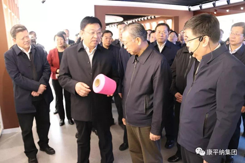 3月23日上午,省委书记刘家义、省长龚正一行率领新旧动能转换项目落地现场观摩团到康平纳进行调研观摩,现场观摩了康平纳年产2万吨标准化筒子纱智能染色共享工厂项目。