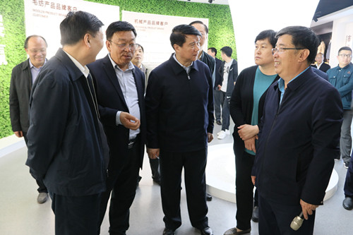 4月21日, 全国政协常委、人口资源环境委员会副主任姜大明带领“推动传统制造业在升级改造中实现绿色发展”专题调研组一行莅临康平纳调研指导。山东省政协副主席韩金峰、泰安市委书记崔洪刚、泰山区委书记赵斌等省市区领导陪同调研,康平纳集团董事长陈队范、总经理刘琳向调研组一行介绍公司发展情况和智能染色共享工厂推广建设情况。