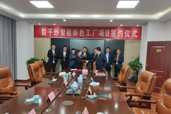 4月13日,枣庄康平纳筒子纱智能染色工厂项目正式签约仪式在枣庄市高新区隆重举行。枣庄市高新区党工委书记王广部,高新区管委会副主任张冲,投资促进局局长冯振,投资促进局副局长王保忠,康平纳集团董事长陈队范,副总经理刘继萍,董事长助理陈卉、范伟、史新强出席签约仪式。
