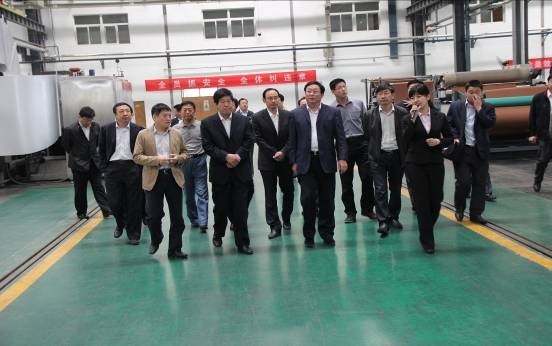 机械公司总经理窦国平陪同潍坊市人民政府办公室副主任李波一行参观装配车间